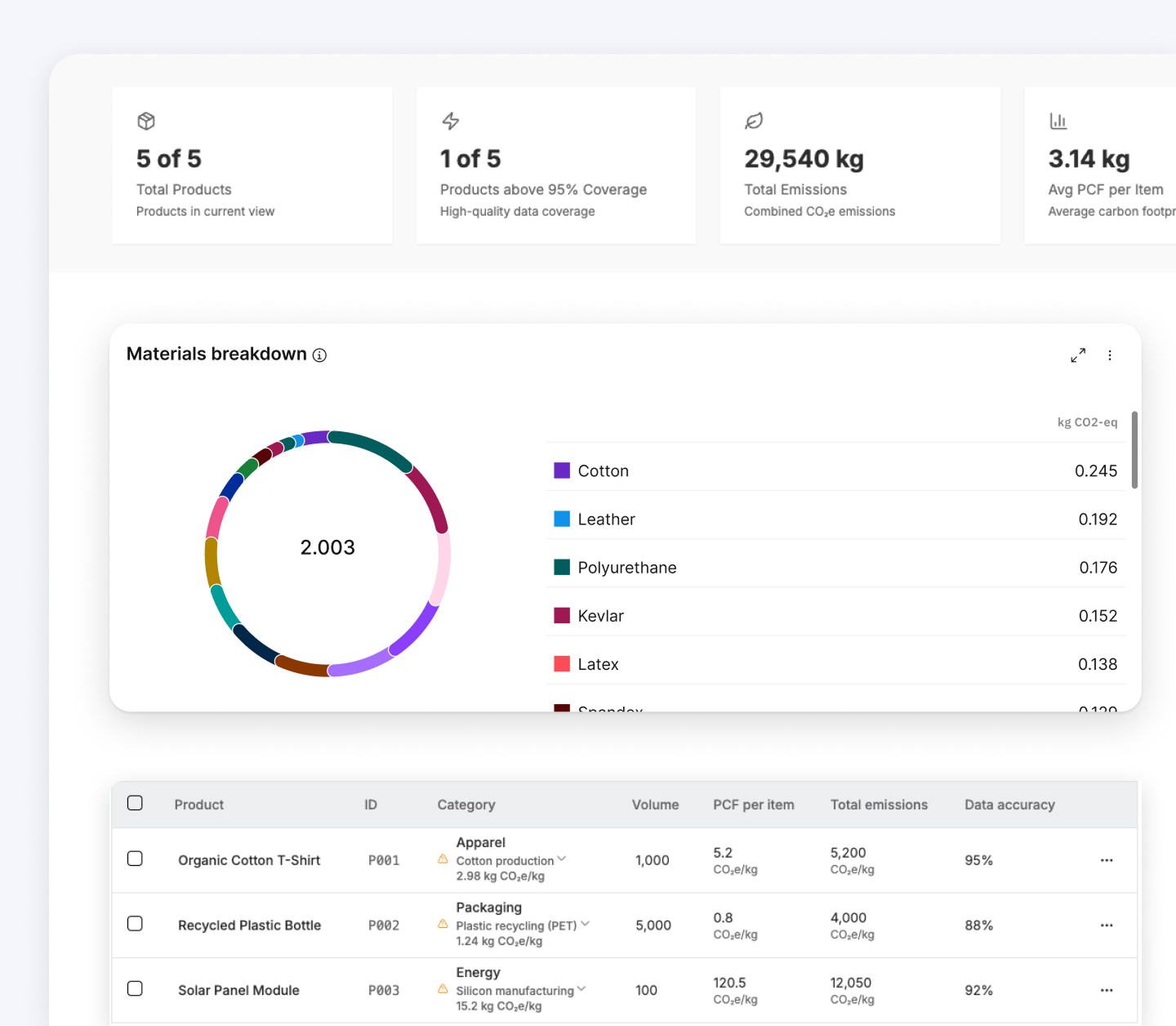Easily calculate and visualize product-level CO₂ emissions — AI-powered, audit-ready, and compliant with ISO 14067 and GHG Protocol standards. From ERP data to supplier inputs, get precise insights in minutes.